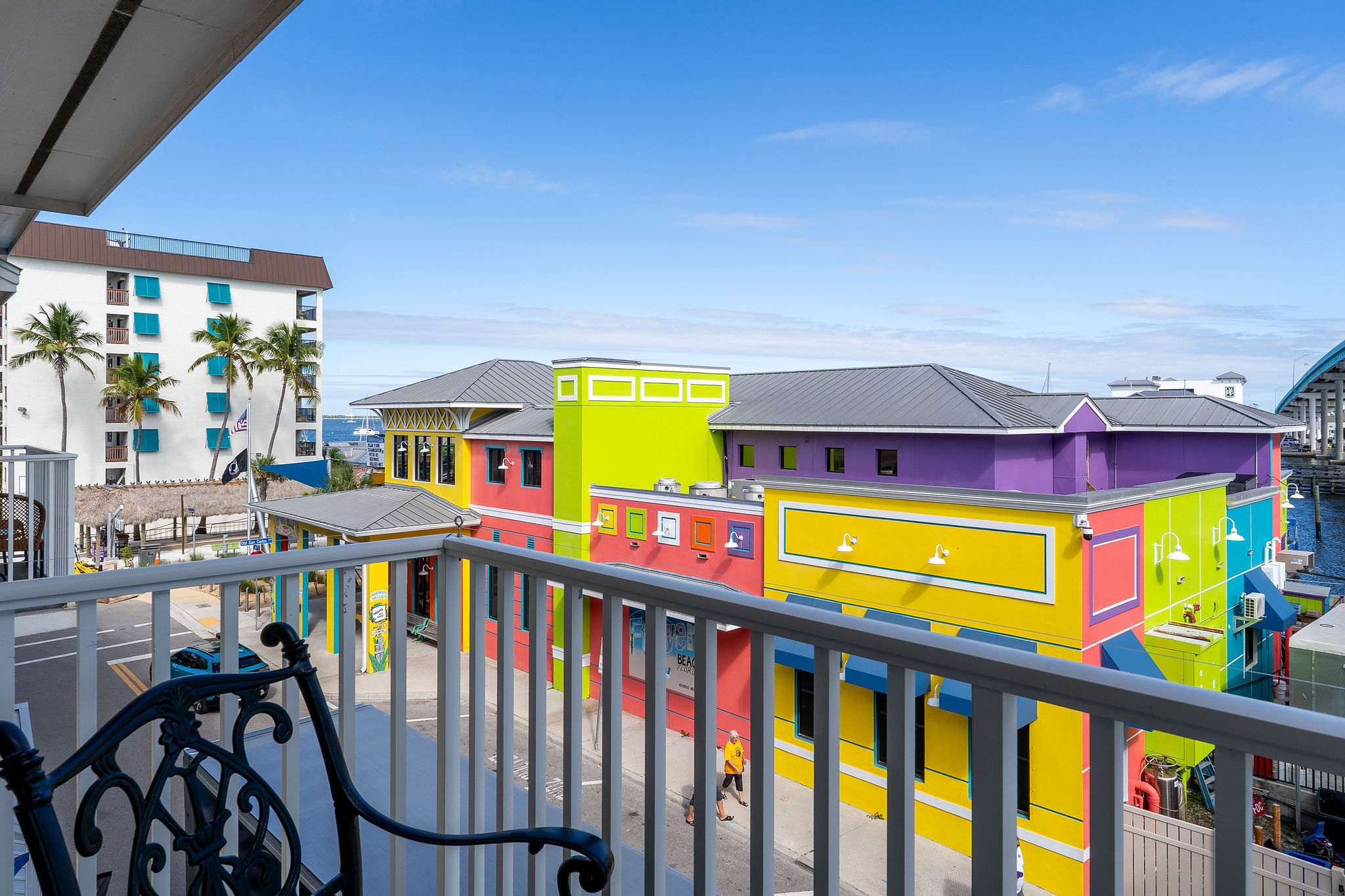 On the second floor of this remarkable building, you’ll discover a world of leisure and relaxation. Take a dip in the sparkling pool, rejuvenate your senses in the inviting hot tub, or simply unwind in the community room and its comfortable sitting area, complete with a television. Ascend to the third floor, where a charming grilling area awaits, accompanied by inviting tables, providing the perfect setting for alfresco dining. Although there may be some ongoing post-hurricane construction on the first floor’s commercial units, rest assured that it will not in any way affect your stay. All rental units are conveniently situated on the second and third floors, effortlessly accessible via a fully operational elevator.